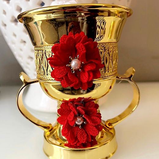 Gold with red flowers